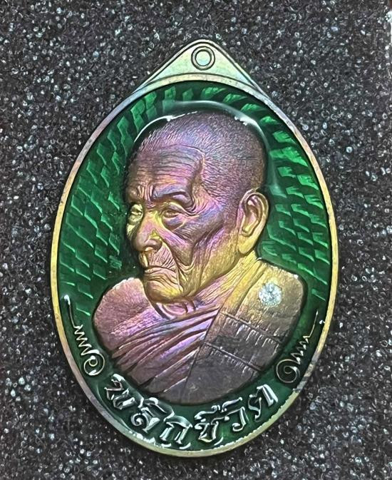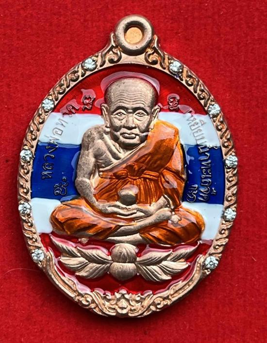 เคาะเดียวแดง.....เหรียญเม็ดแตง หลวงพ่อแช่ม วัดฉลอง จังหวัดภูเก็ต เนื้อเงินลงยา |