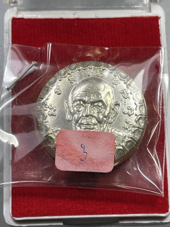 เหรียญตลับยาหม่อง เนื้อเงิน ด้านหลังติดหนังเสือ พ่อท่านผ่อง วัดแจ้ง เลข 3 |