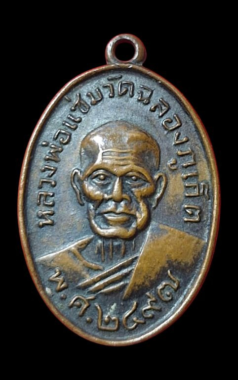 เหรียญหลวงพ่อแช่ม วัดฉลอง พิมพ์หลังยันต์หัวใจ เนื้อทองแดง ปี 2484 (พร้อมบัตรการันตีพระ) |