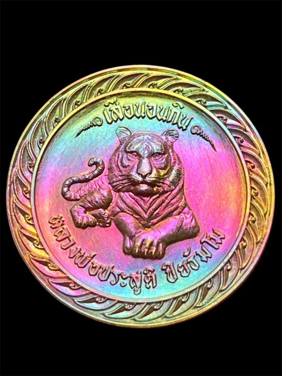 เหรียญเสือนอนกิน รุ่น ชนะจนมนต์พยัคฆ์ หลวงพ่อประสูติ วัดในเตา จ.ตรัง เนื้อชนวนผิวรุ้ง No.44 พร้อมเดิมกล่องครับ |