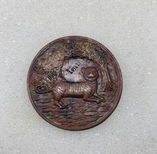 เหรียญเสือนอนกินรุ่นครูยกศิษย์ให้เหนือดวง อ.ประสูติ วัดในเตา จ.ตรัง แช่น้ำมันเสือ ปี2565 |