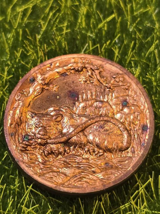 เหรียญพญาเสือนอนกิน เนื้อทองแดง หลวงพ่อประสูติ วัดในเตา ตรัง เลข 737 ปี 2560 <292> |