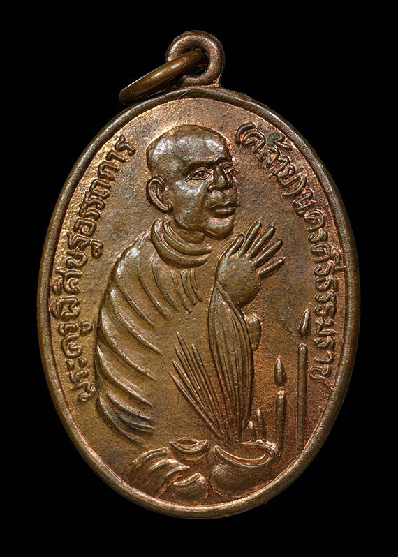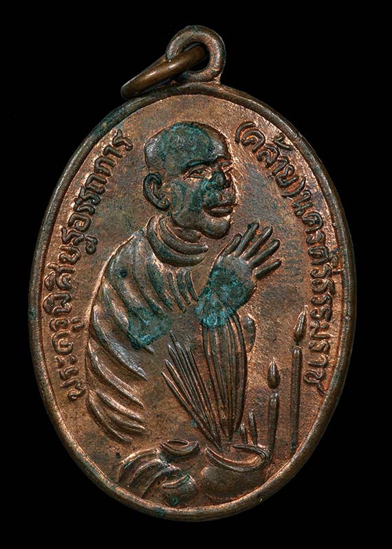 เหรียญ พ่อท่านคลิ้ง วัดถลุงทอง พิมพ์หลัง ภปร เนื้อทองแดงผสม ปี 2521 |