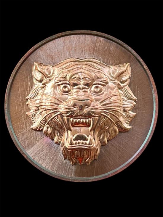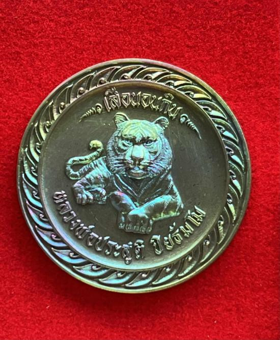 เหรียญชนะจน มนต์พยัคฆ์ เสือนอนกิน รุ่นแรก พระอาจารย์ประสูติ (หลวงพ่อประสูติ) วัดในเตา จ.ตรัง เนื้อชนวนผิิวรุ้ง |