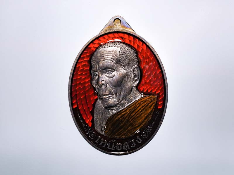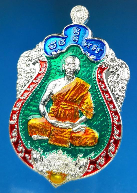 เหรียญรุ่นวาสนาได้เลื่อน พ่อท่านพรหม วัดพลานุภาพ ปี2553 เนื้อเงินลงยาหน้ากากทองคำ No.99 |