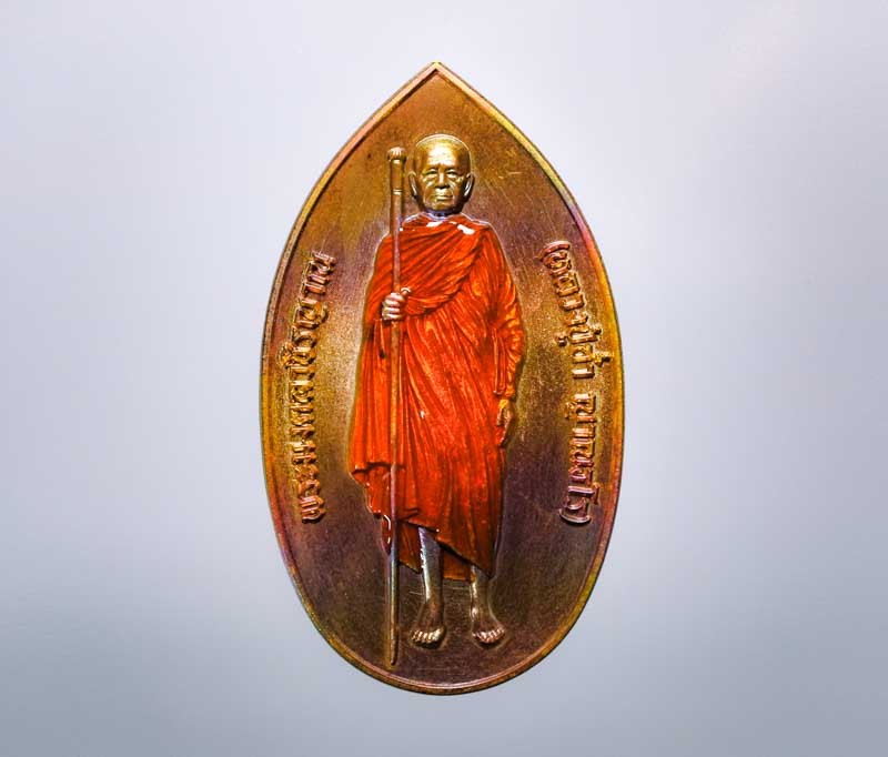 เหรียญพระครูพันธ์ วัดหนองส้ม รุ่น 2 เนื้อทองแดงรมดำ |