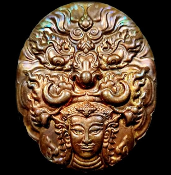 เหรียญพญาราหู พระอาจารย์ประสูติ วัดในเตา เหรียญเทพราหู เนื้อสัมฤทธิ์แดงกรรมการ ฝังเม็ดกริ่ง3องค์ |