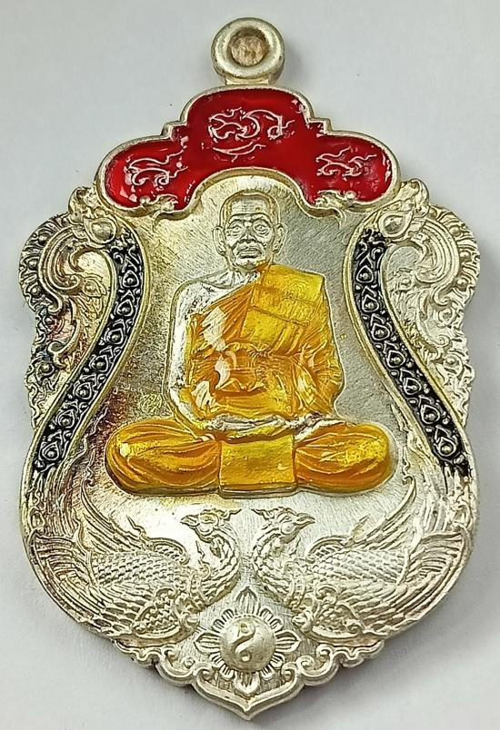 เหรียญเสมา "สารพัดรวย" หลวงพ่อพัฒน์ วัดห้วยด้วน เนื้อเงินลงยาขุ้ยพื้นสีแดง (น้ำหนัก 17.81กรัม) เบอร์ 22 พร้อมกล่องครับ