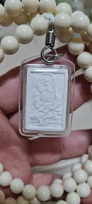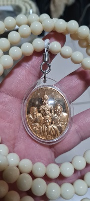 เหรียญปราบไตรภพ เนื้อทองทิพย์ หลวงตาม้า วัดถ้ำเมืองนะ จ.เชียงใหม่ พร้อมรอยจารหลวงตาม้า เลี่ยมจากวัดพร้อมประคำ