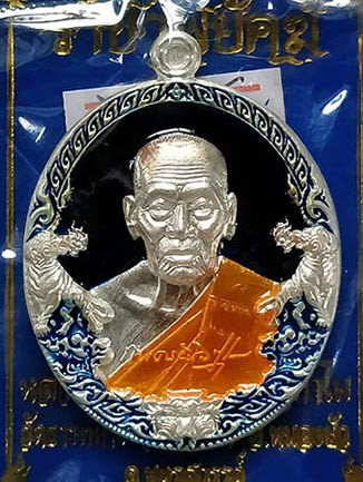 เหรียญหลวงพ่อพัฒน์ วัดห้วยด้วน "รุ่นราชาพยัคฆ์ปี" 2563 เนื้อเงินลายเสือ ลงยาน้ำเงิน ลงยาจีวร