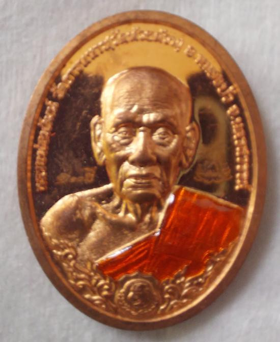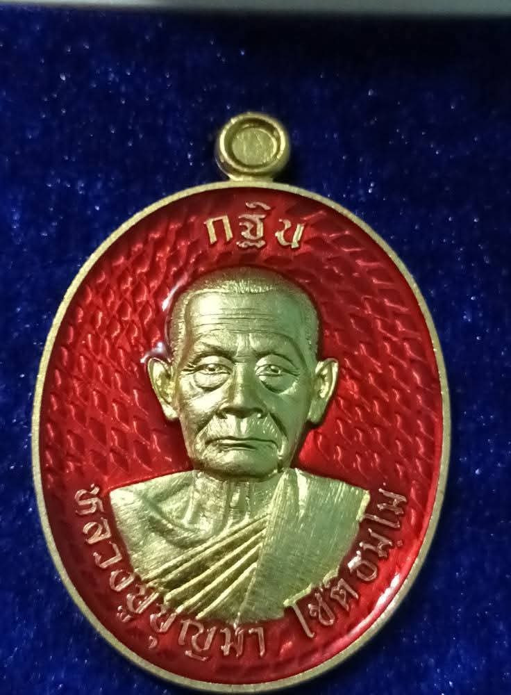 เหรียญพ่อพัฒน์ วัดห้วยด้วน นครสวรรค์ "ราชาพยัคฆ์"เนื้อสัตตะ ลงยา 3 สี พื้นแดง ขอบน้ำเงิน ลงยาจีวร (รายการที่ 13)