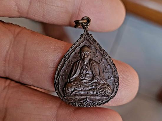 เหรียญครูบาเจ้าศรีวิชัย รุ่น 111 ปี พิมพ์หยดน้ำ วัดบ้านปาง อ.ลี้ ลำพูน ทองแดงรมดำ ปี 2532 ตอกโค๊ด กริบๆ