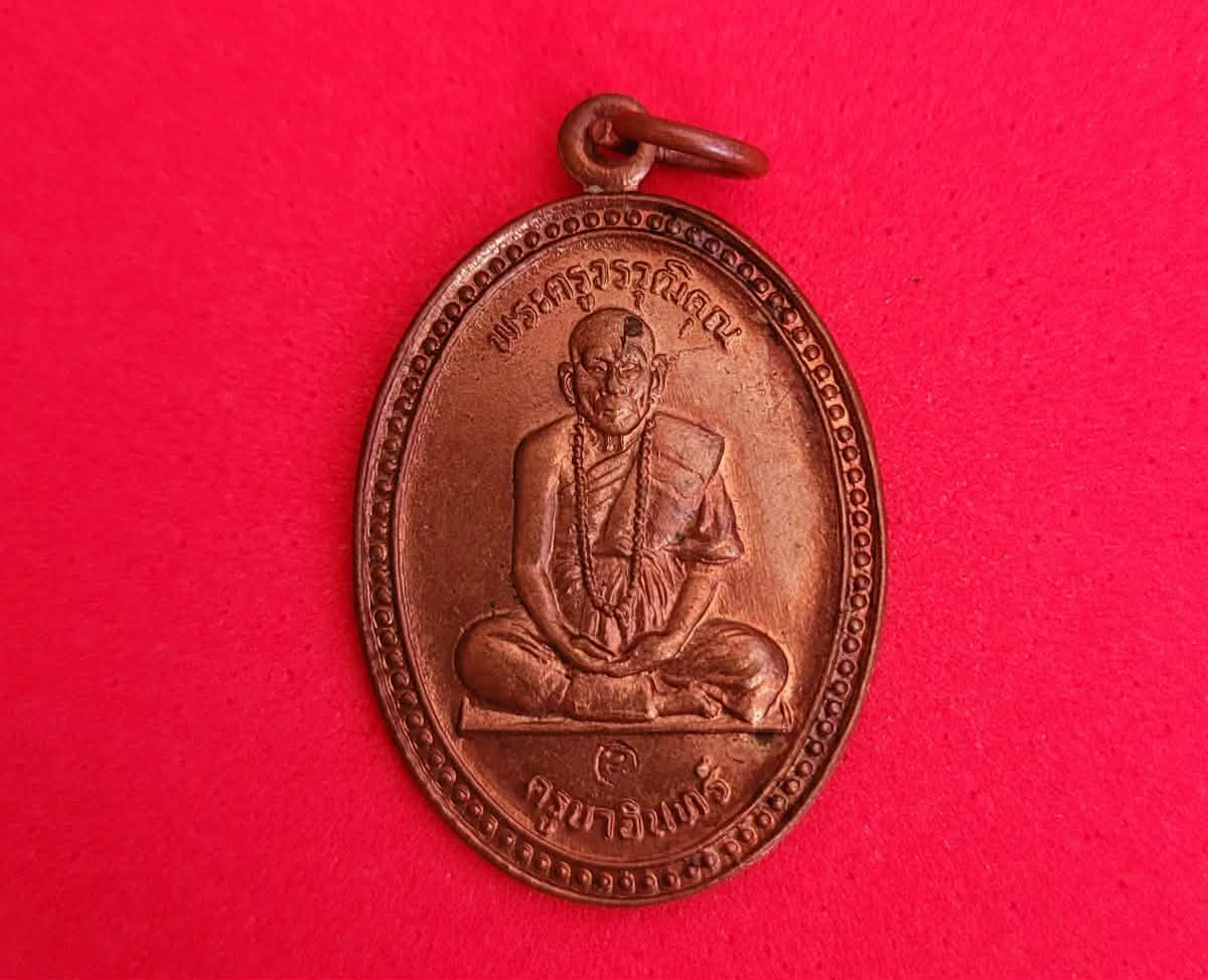 เหรียญนั่งเต็มองค์ ครูบาอินทร์(อิน อินโท)หรือพระครูวรวุฒิคุณ วัดฟ้าหลั่ง อ.จอมทอง(ดอยหล่อ) จ.เชียงใหม่ เหรียญรุ่น 4หรือรุ่น ปว. เนื้อทองแดง ตอกโค๊ด อุ ปี 2533 |