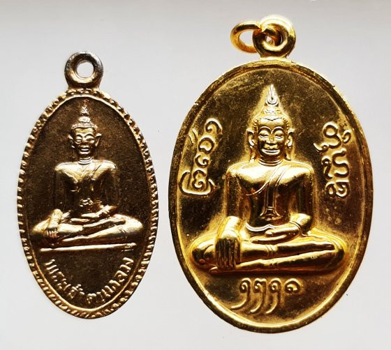 << วัดใจ >> เหรียญพระเจ้าตนหลวง หลังยันต์ ปี20 + เหรียญพระเจ้าตนหลวง หลังยันต์จม ปี21 วัดศรีโคมคำ จ.พะเยา กะไหล่ทองเดิม ทั้ง ๒ เหรียญ |