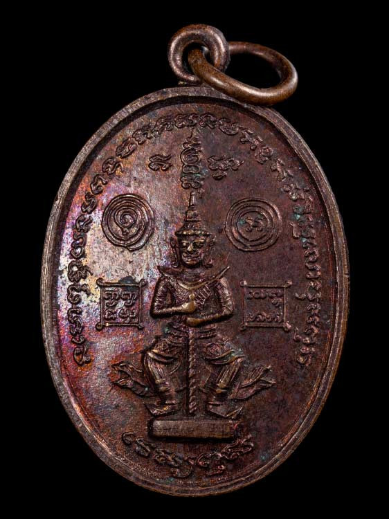 เหรียญสิงห์หนึ่ง วัดร่องแมด เนื้อทองแดงรมดำ ปี 17 |