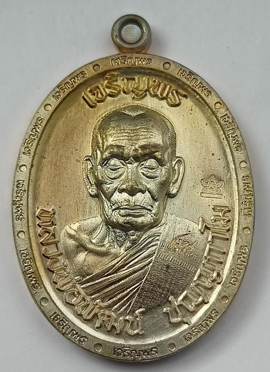 เหรียญเจริญล่าง 65 ขอบเจริญพร หลวงพ่อพัฒน์ ปุญฺญกาโม หลังเรียบสร้างน้อย เนื้ออัลปาก้า เลข ๙๓ เลี่ยมพร้อมใช้ สวยๆ พร้อมกล่องเดิม |