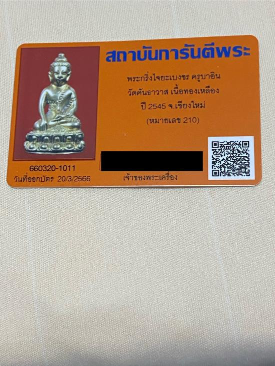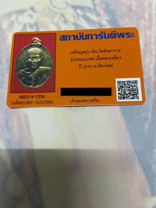 มีบัตรรับรองพระเครื่องของ