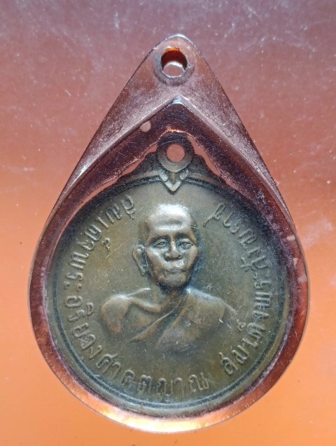 เหรียญหยดน้ำ หลวงพ่อโถม สุโขทัย รุ่นแรก หูขีด ทองแดง ไม่มีกล่อง