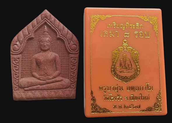 พร้อมกันทีเดียว 2 องค์ครับ ขุนแผนอิ่นแก้ว(รุ่นแรก) ครูบาอุ่น วัดโรงวัวสันป่าตอง จ.เชียงใหม่ + เหรียญเสมา ที่ระลึกครบ 8 รอบ ครูบาอุ่น วัดโรงวัว จ.เชียงใหม่ 2567 ชุบเงิน ฝังพลอยขาว คลาสสิค หมายเลข 15
