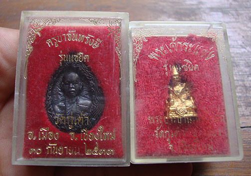 พระเจ้าระแข่ง+เหรียญรุ่นแซยิด ครูบาจันทรังษี ( วัดกู่เต้า เชียงใหม่ 2 องค์) กล่องเดิมสวยครับ
