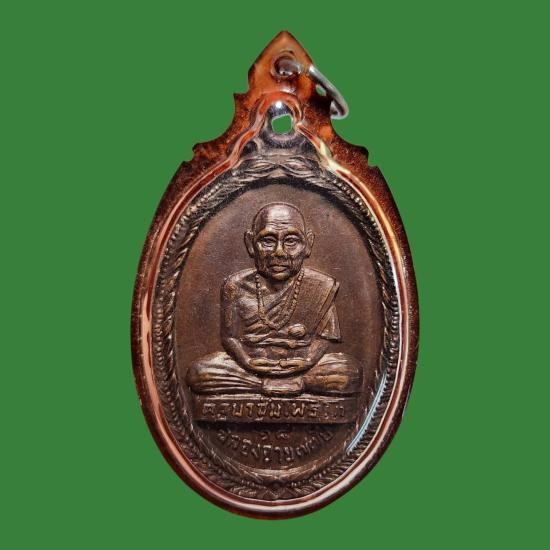 เหรียญพระอาจารย์อิทธิชโยภิกขุ ลำปาง คณะศิษย์สร้างถวายอาจารย์เป็นที่ระลึก สวยเดิมเลี่ยมเก่า ผิวไฟ