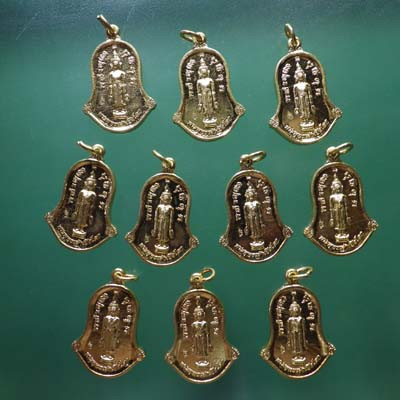 เหรียญยืนหลวงพ่อบุญเย็น สำนักพระเจ้าพรหมมหาราช จ.เชียงใหม่ รุ่นสร้างสะพาน 2521 เนื้อกะไหล่ทองลงยา