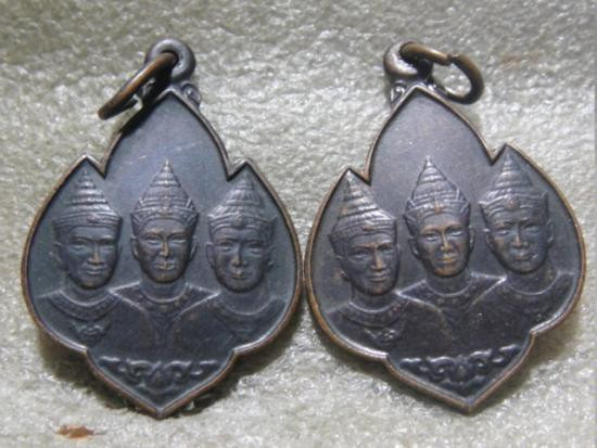 วัดใจเคาะเดียว..........100...........เหรียญสามพระมหากษัตริย์(พ่อขุนรามคำแหงมหาราช./พญาเม็งราย./พญางำเมือง.) พิธีใหญ่ พ.ศ.๒๕๒๕ ตอกโค๊ต หลวงปู่แหวนปลุกเสก รวม 2 เหรียญ |