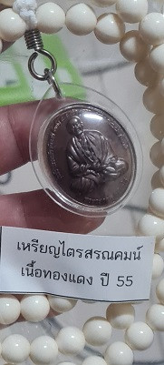 เหรียญไตรสรณคมน์ เนื้อทองแดง หลวงตาม้า วัดถ้ำเมืองนะ พร้อมรอยจารหลวงตาม้า เลี่ยมจากวัดพร้อมประคำ |