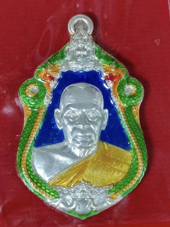 เหรียญรวยเลื่อนยศ63 หลวงพ่อพัฒน์ วัดห้วยด้วน เนื้อเงินลงยา |