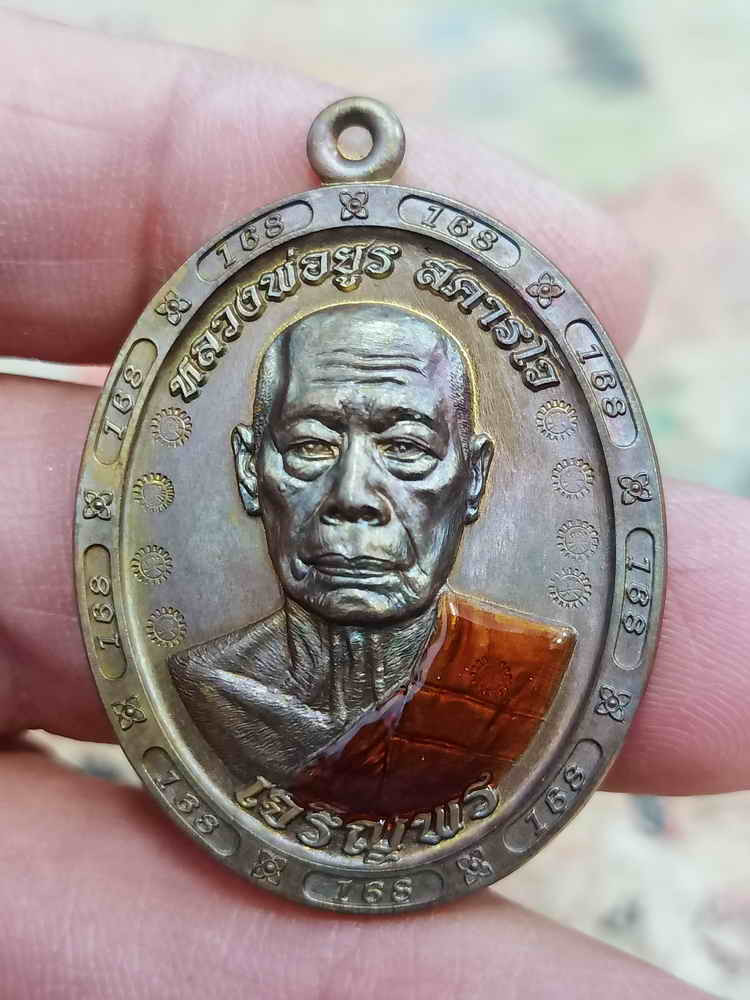 วัดใจ 100 PSGA เหรียญเจริญสุข งานบุญกฐิน หลวงพ่อยูร สคารโว วัดพนมเศษเหนือ จ.นครสวรรค์ ปี 2566 เนื้ออัลปาก้า ฝังพลอย ลงยาจีวร หมายเลข 188 กล่องเดิม ***ป๋องสุพรรณการันตี |