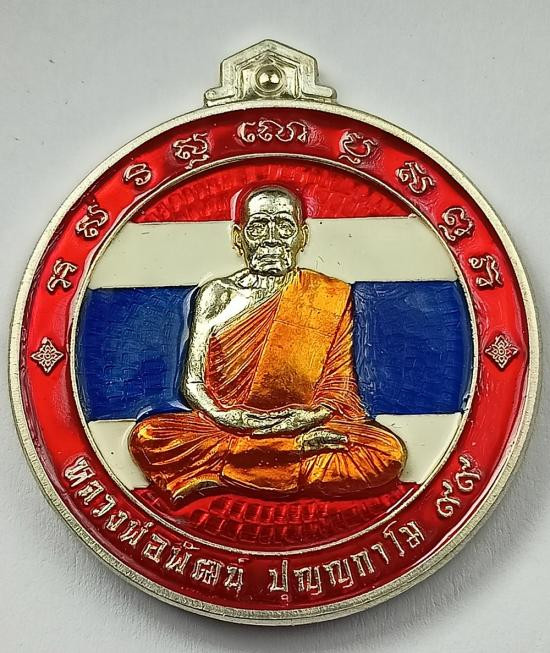 เหรียญเสมา หลวงพ่อพัฒน์ วัดห้วยด้วน รุ่น คชบารมี 99 ปี 63 เนื้อชุบเงิน ลงยา 4 สีลงยาจีวร |