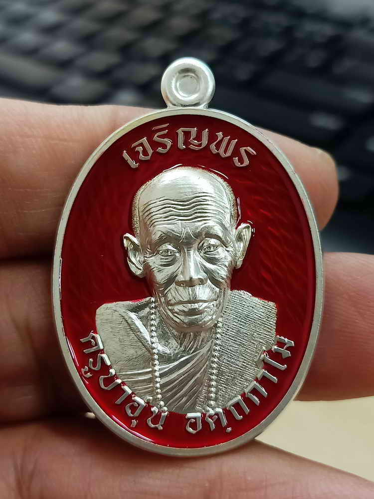 วัดใจ 150 เหรียญเจริญพรบน ที่ระลึกอายุครบ 8 รอบ ครูบาอุ่น อัตถกาโม วัดโรงวัว จ.เชียงใหม่ 2567 รก.73 เนื้อชุบเงินโบราณ ลงยาแดง หมายเลข 56 สร้าง 96 เหรียญ กล่องเดิม***ดำริจัดสร้าง |