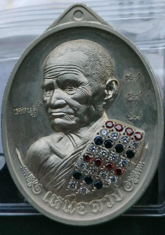 เหรียญหันข้างรุ่น"เหนือดวง"หลวงพ่อเงิน พุทธโชติ วัดบางคลาน พิจิตร(ออกวัดท้ายน้ำ) เนื้ออัลปาก้า ฝังพลอย3สีเต็มสังฆาฏิ(29เม็ด)ตอก"เศรษฐี รวย รวย รวย" หมายเลข 24 พร้อมกล่อง (สร้างเพียง25เหรียญ) |