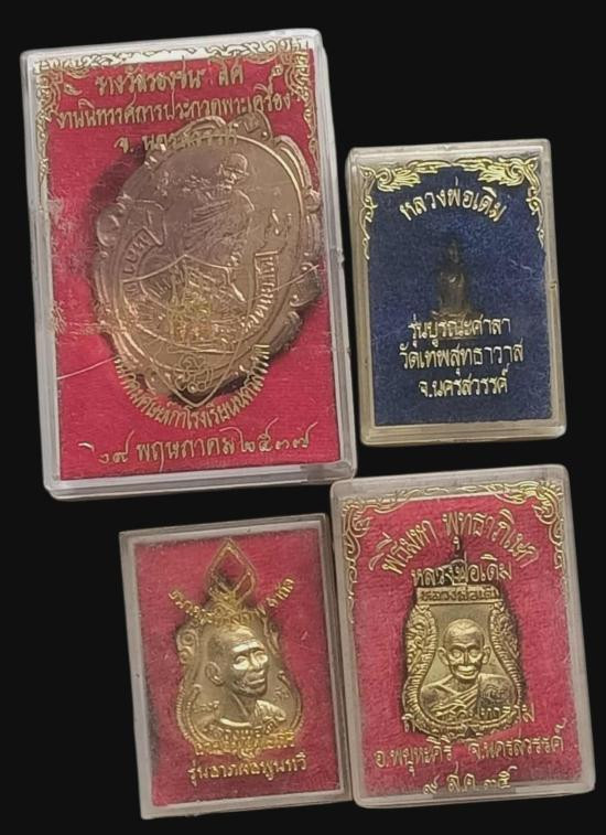 กริ่งดีดนํ้ามนต์ หลวงพ่อเขียน วัดสํานักขุนเณร สร้างโรงพยาบาล (รุ่น 555) กล่องเดิม + รูปหล่อ + เหรียญหลวงพ่อเพชร พิจิตร + เหรียญ รุ่น เฉลิมบารมี หลวงพ่อเฉลิม วัดวังหว้า พิจิตร