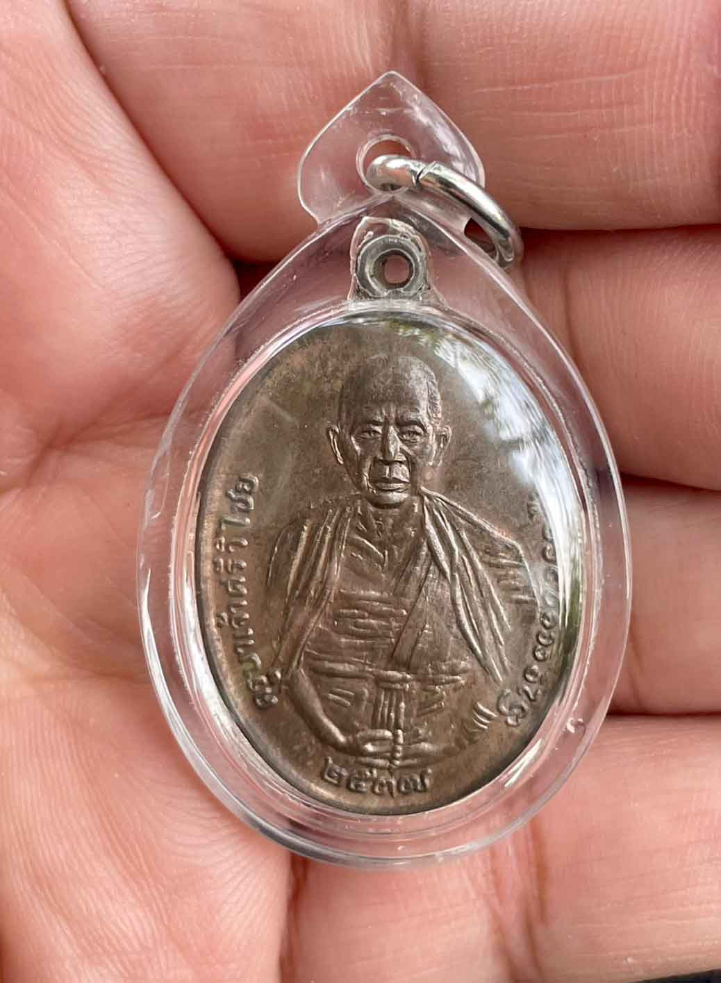 วัดใจ เหรียญครูบาศรีวิชัย ปี 2537 เนื้อนวะโลหะ ไม่ทราบที่ เลี่ยมพลาสติก สวยงาม