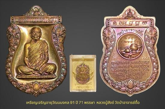 เหรียญเสมา"เสือคาบแก้ว"ที่ระลึกอายุครบ๘รอบ หลวงปู่นวล อัคคธัมโม วัดหนองจอก จ.พิจิตร เนื้อนวะโลหะ หน้ากากเงินลงยาจีวร "โค๊ตศาลา+จรเข้" หมายเลข ๙๑ พร้อมกล่อง(เหรียญแถมชุดทองคำ) สวยๆน่าสะสมคับ