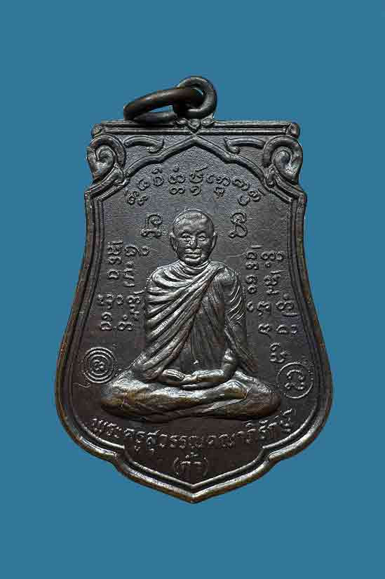 เหรียญครูบากองแก้ว ปี 2523 วัดต้นยางหลวง เนื้อทองแดงรมดำ