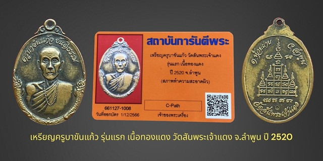 เหรียญครูบาขันแก้ว รุ่นแรก เนื้อทองแดง วัดสันพระเจ้าแดง จ.ลำพูน ปี 2520