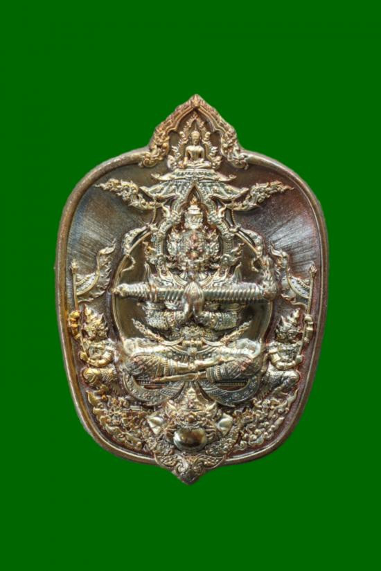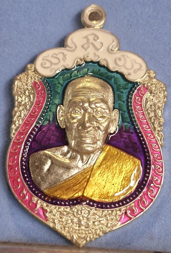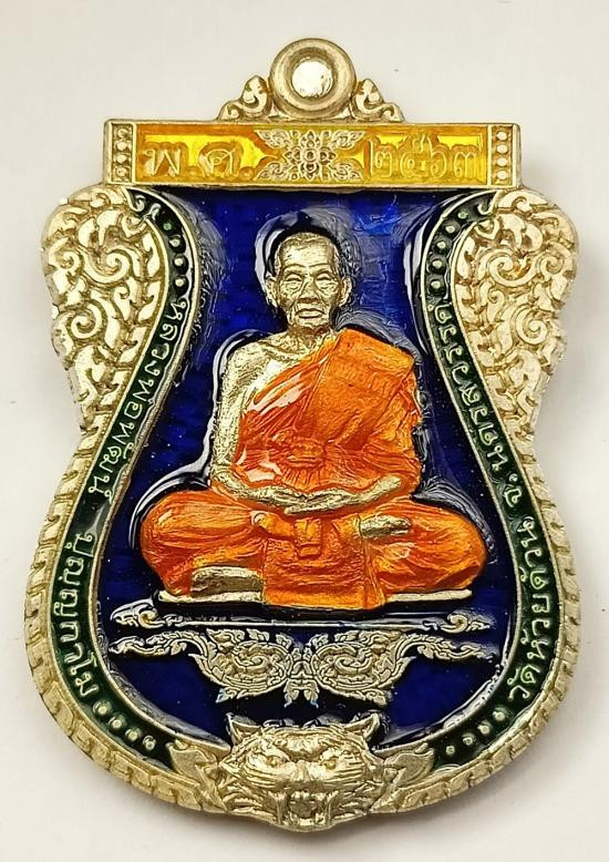 เหรียญเสมา หลวงพ่อพัฒน์ วัดห้วยด้วน รุ่น คชบารมี 99 ปี 63 เนื้อชุบเงิน ลงยา 4 สีลงยาจีวร |