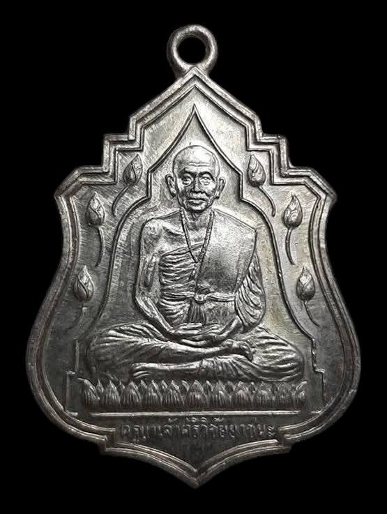 เหรียญครูบากองแก้ว ปี 2523 วัดต้นยางหลวง เนื้อทองแดงรมดำ