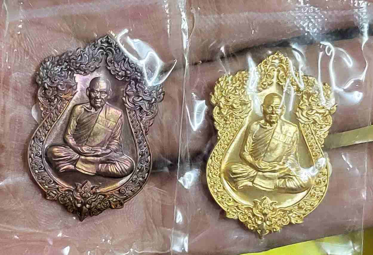 พร้อมกันทีเดียว 2 เหรียญ เหรียญพระพุทธครบรอบ 36 ปี วัดโรงธรรมสามัคคี อ.สันกำแพง จ.เชียงใหม่ พ.ศ.2517 + เหรียญพระเจ้าตนหลวง พิมพ์ใบโพธิ์จิ๋ว ทองแดงกะหลั่ยทอง ปี 2523 สวยมากๆครับ