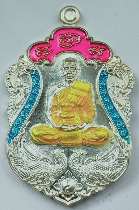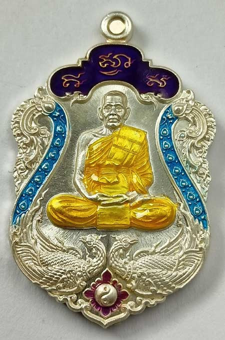 เหรียญหลวงพ่อพัฒน์ วัดห้วยด้วน "รุ่นราชาพยัคฆ์ปี" 2563 เนื้อเงิน ลงยาหลากสี ลงยาจีวร |