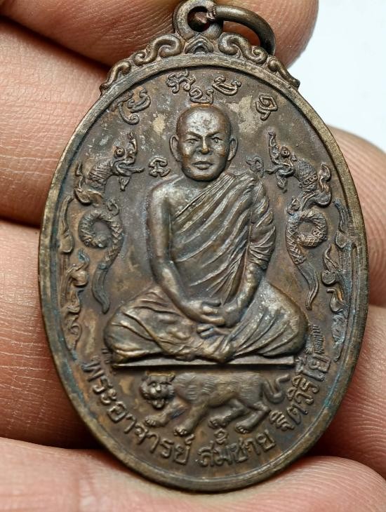 50.-/// เหรียญนั่งเสือข้างพญานาค หลวงพ่อสมชาย วัดเขาสุกิม จันทบุรี ปี2521 เนื้อทองแดง |