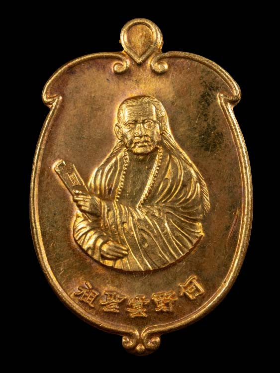 เหรียญรูปไข่กะไหล่ทองรุ่นแรก หลวงพ่อบัว วัดบางเป้ง จ.ชลบุรี |