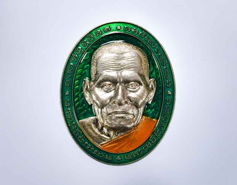 หลวงปู่ม่น รุ่นไตรมาส ปี 2537 เนื้อเงิน ลงยา |