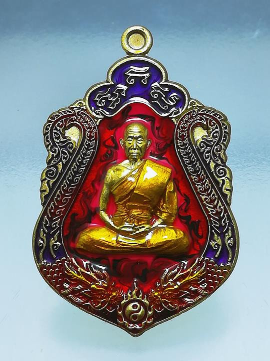 ## เนื้อนวะโลหะ ## เหรียญอายุายืน เนื้อนวะโลหะลงยาเขียว หน้า- หลัง หน้ากากชุบทอง ขอบชุบทอง หลวงปู่บุญมา จ.ปราจีนบุรี (---B22---) |