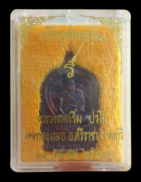 เหรียญนั่งพาน หลวงพ่อเริ่ม วัดจุกกะเฌอ จ.ชลบุรี พร้อมกล่องเดิม |