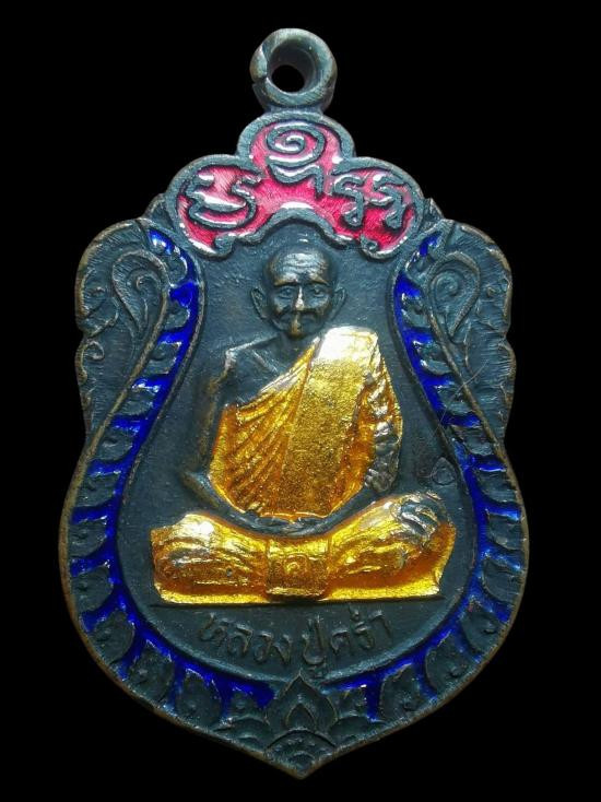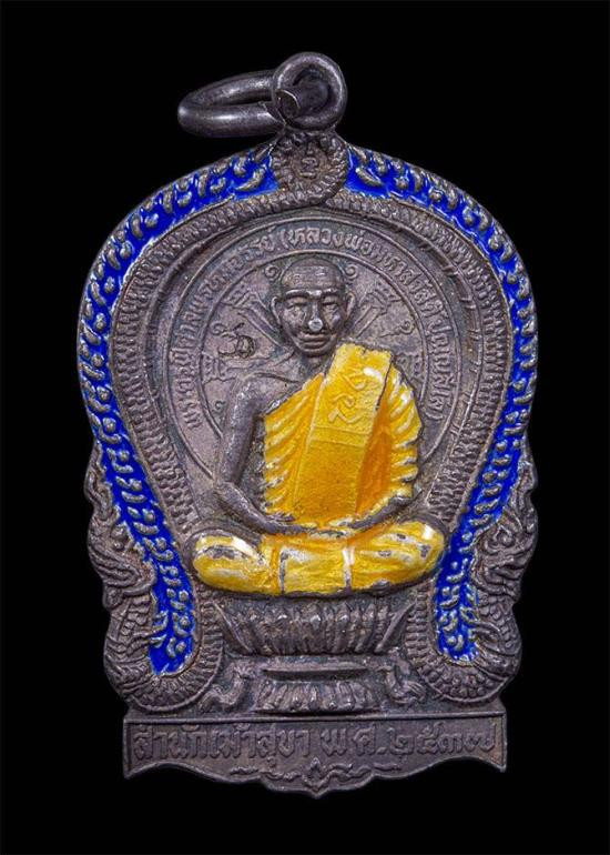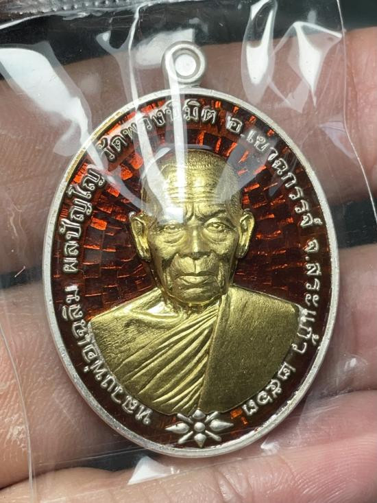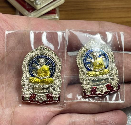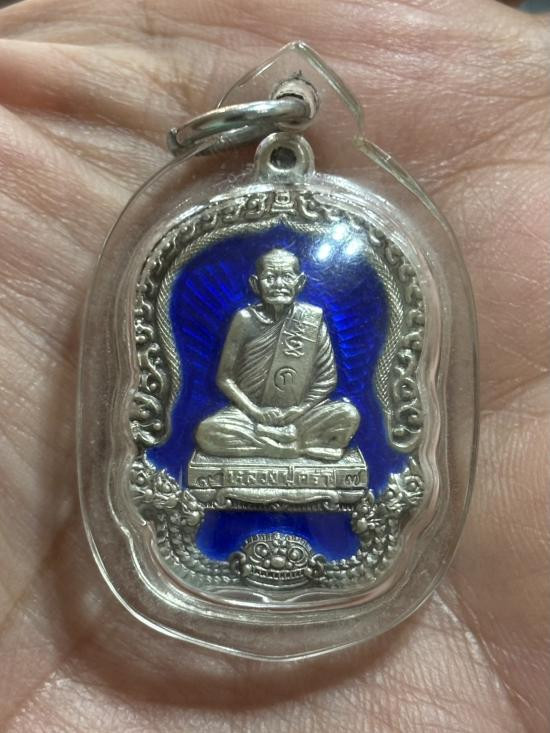*** แดงเคาะแรก พระบ้านเหมามาแบ่งปัน *** เหรียญจตุพร เนื้อเงิน ลงยาสีน้ำเงิน หลวงปู่คร่ำ no.๓๕๗ |