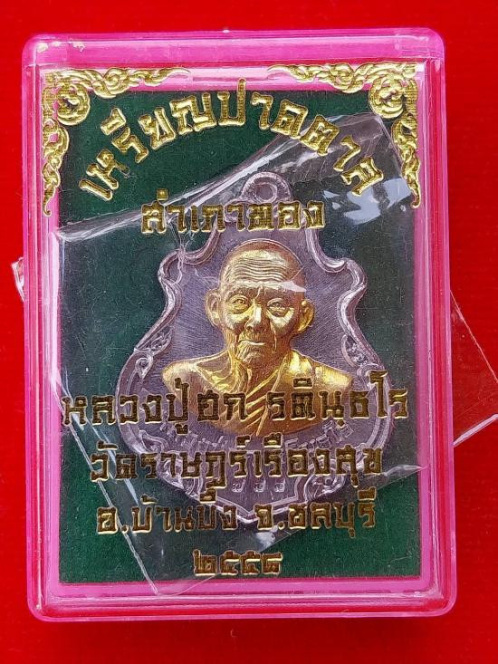 หรียญปาดตาล สำเภาทอง เนื้อตะกั่วหน้าทอง หลวงปู่ฮก ชลบุรี ปี 58 สวยๆเดิมๆนอนกล่อง |