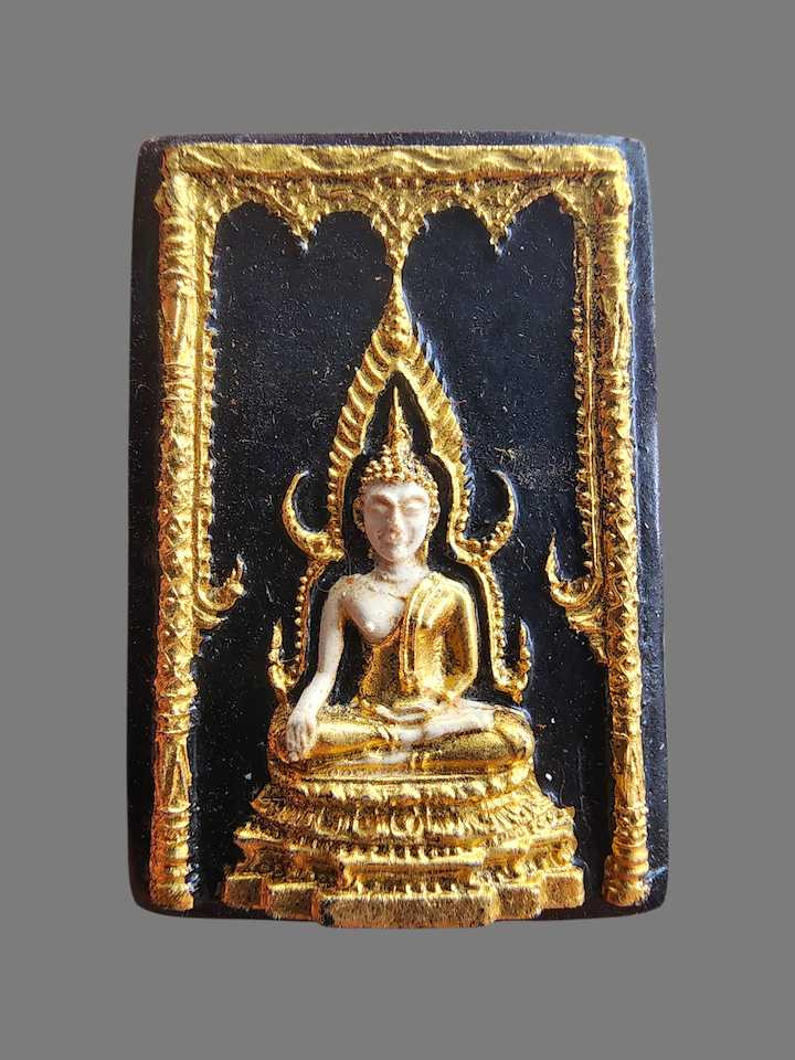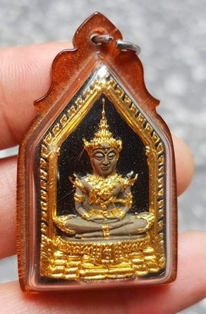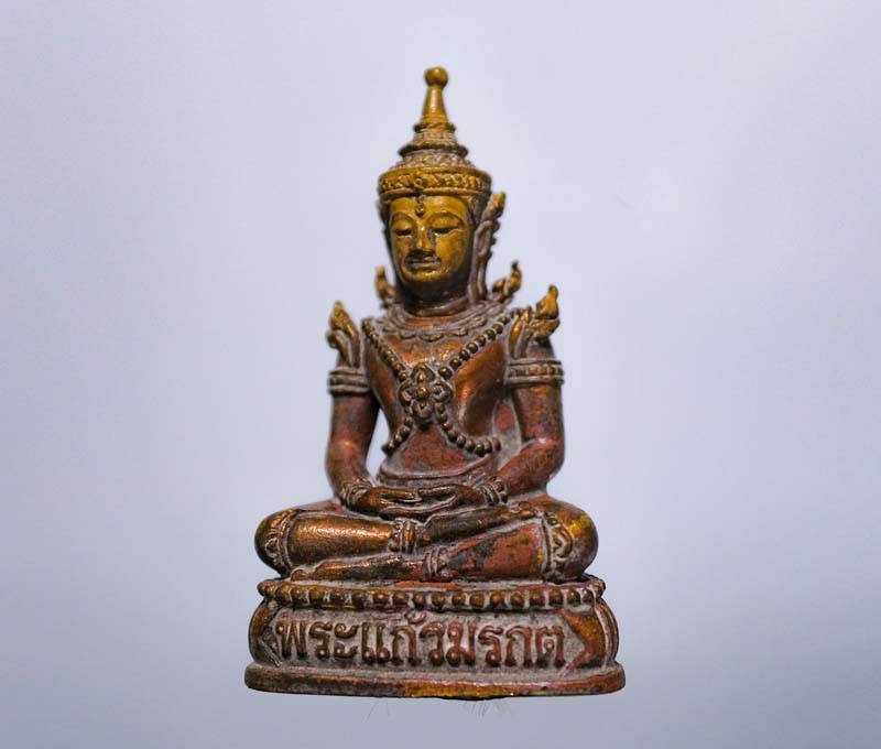พระแก้วมรกต หลวงพ่อเริ่ม วัดบางพระ ชลบุรี ห้าเหลี่ยม ปี 2513 เนื้อผงลงรักปิดทอง เลี่ยมวินเทจ |